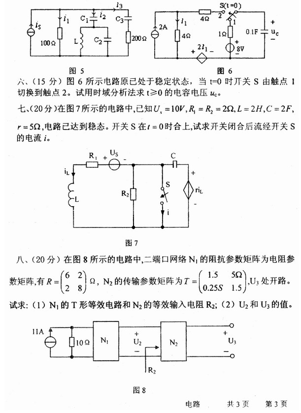 武汉大学2000年-2015年电路考研真题高清版(16)