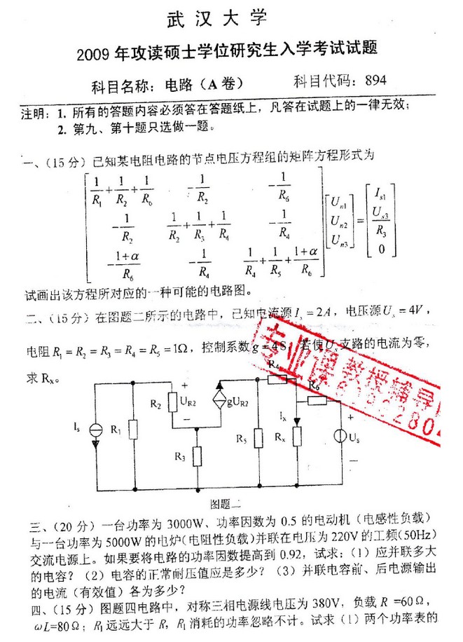 武汉大学2000年-2015年电路考研真题高清版(22)