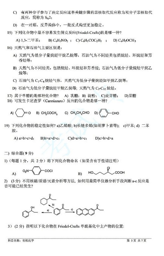 2014年-2015中国科学院大学有机化学硕士研究生入学考试题(3)