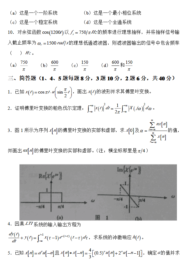 专业课考研资料 本站小编 免费考研网 2020-02-17西安邮电大学2010年824信号与系统考研真题