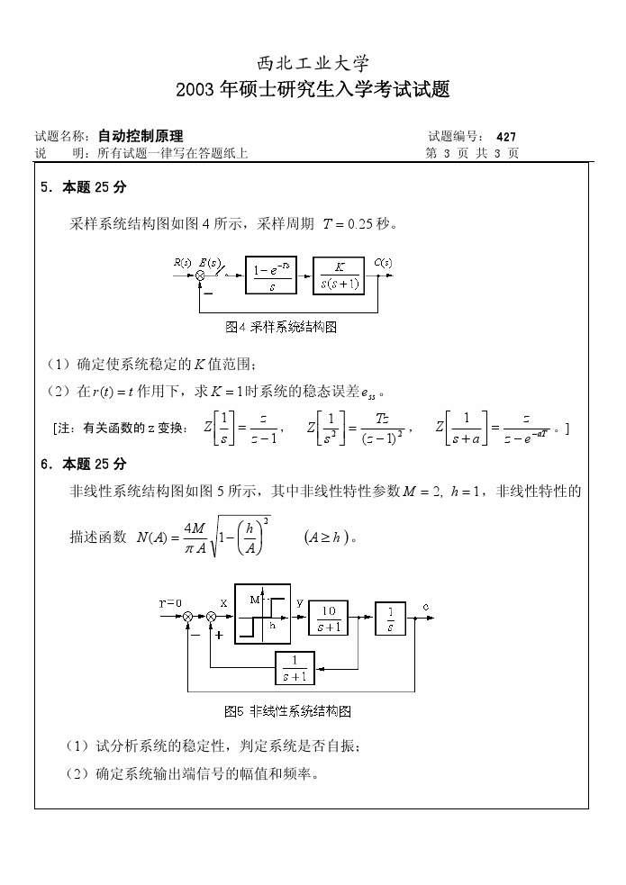 西北工业大学2001-2010自动控制原理考研试题(9)