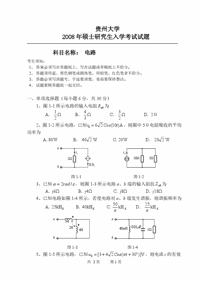相关话题/贵州大学 电路