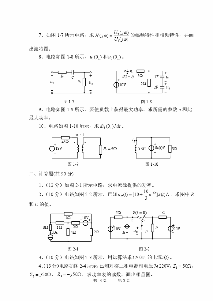 2000-2014年贵州大学电路考研真题与答案解析(22)