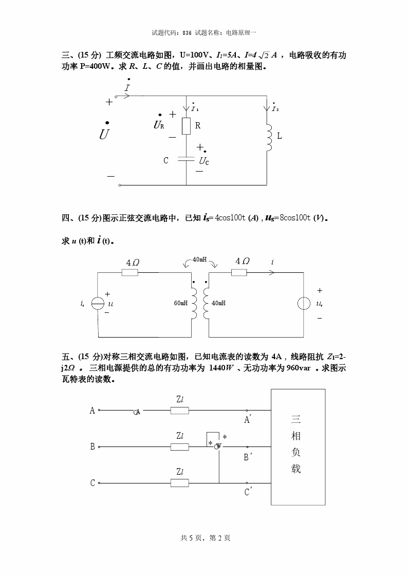 2000-2014年贵州大学电路考研真题与答案解析(37)