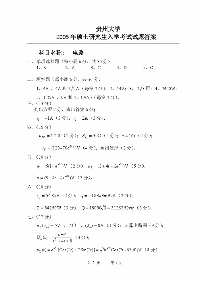 2000-2014年贵州大学电路考研真题与答案解析(41)