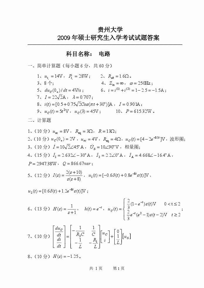 2000-2014年贵州大学电路考研真题与答案解析(49)