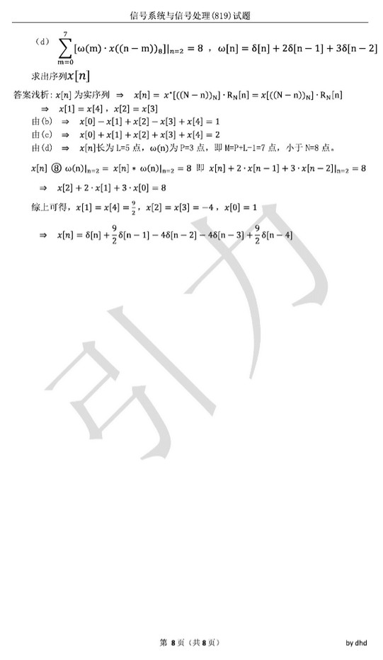 2011年上海交通大学819信号系统与信号处理考研真题答案(8)