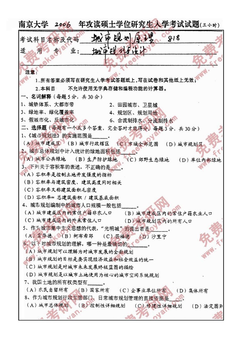 2001-2014南京大学城市规划原理621+城市规划基础356考研试题(7)