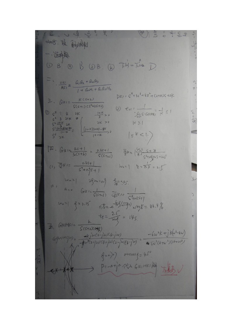 1画不同k值的幅频图 2求劳斯判据 3求三阶系统5%通频带 4 z变换圆不同点问意义 5简单传递函数 6带运放传递函数 7求误差函数 8求二阶系统校正 我他妈日了狗,最难的题放前面,后面四道送分题五分钟一个 ...