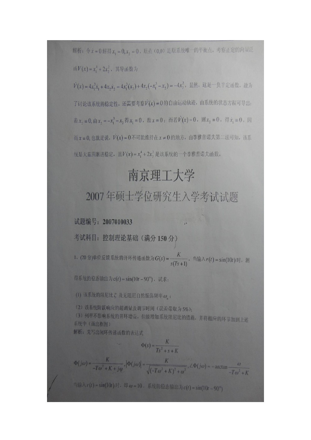 2004-2011年南京理工大学自动控制原理真题及答案解析(25)