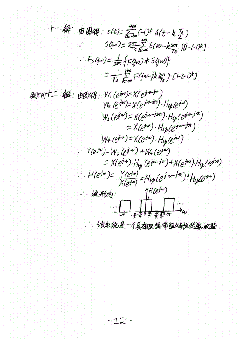 华南理工大学824信号与系统考研历年真题答案(手抄版)2005-2016年(14)