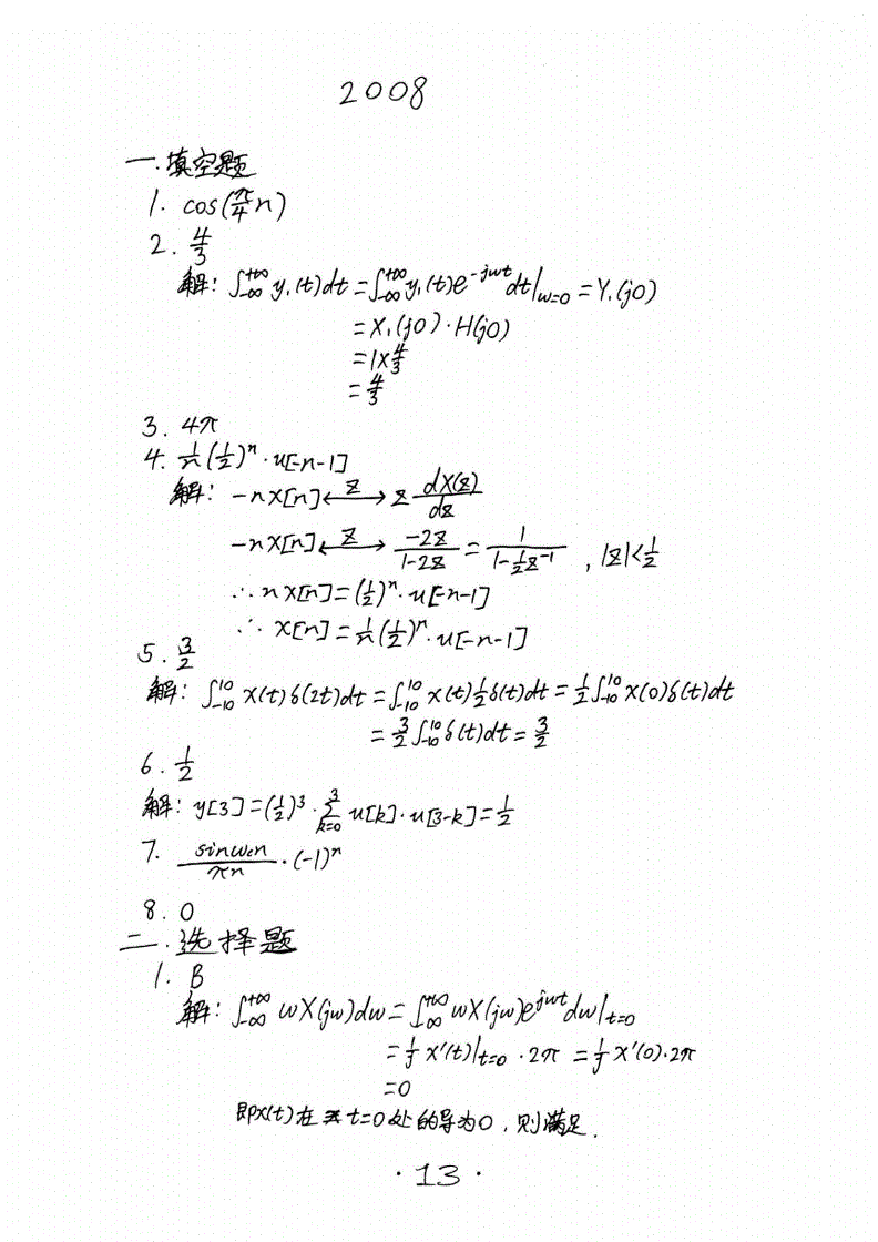 华南理工大学824信号与系统考研历年真题答案(手抄版)2005-2016年(15)