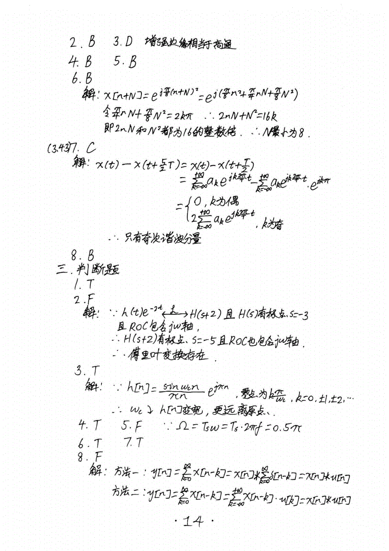 华南理工大学824信号与系统考研历年真题答案(手抄版)2005-2016年(16)