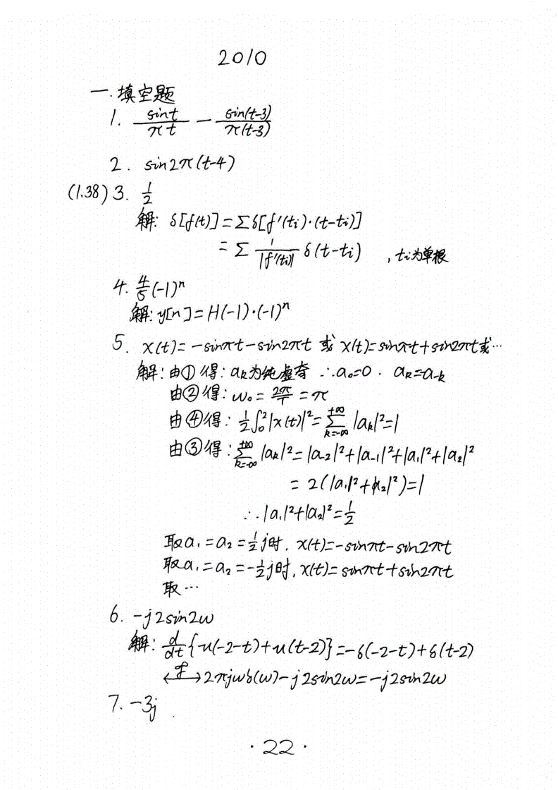 华南理工大学824信号与系统考研历年真题答案(手抄版)2005-2016年(24)