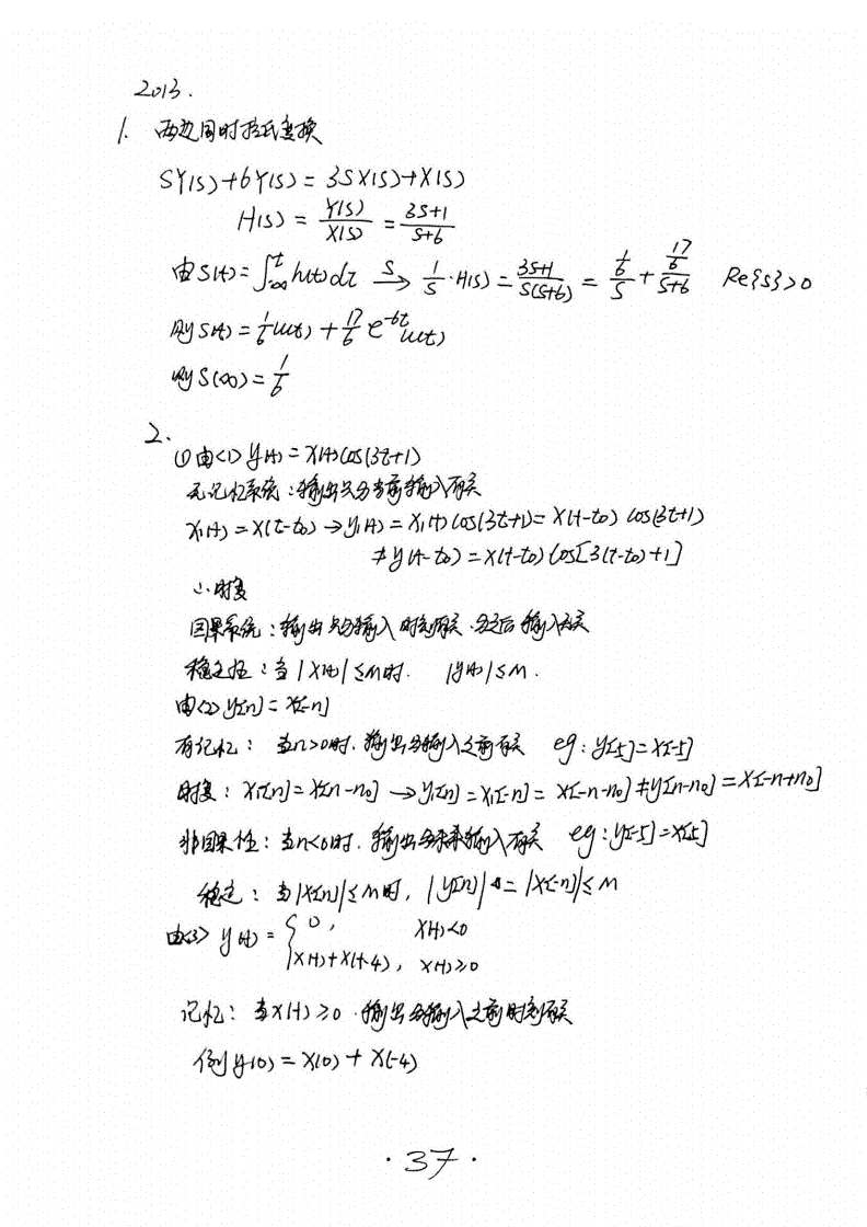 华南理工大学824信号与系统考研历年真题答案(手抄版)2005-2016年(39)