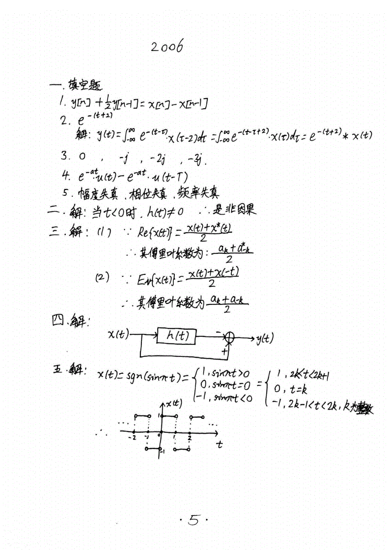 华南理工大学824信号与系统考研历年真题答案(手抄版)2005-2016年(7)
