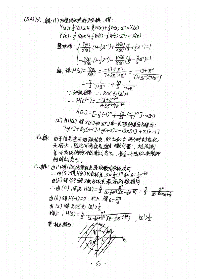 华南理工大学824信号与系统考研历年真题答案(手抄版)2005-2016年(8)