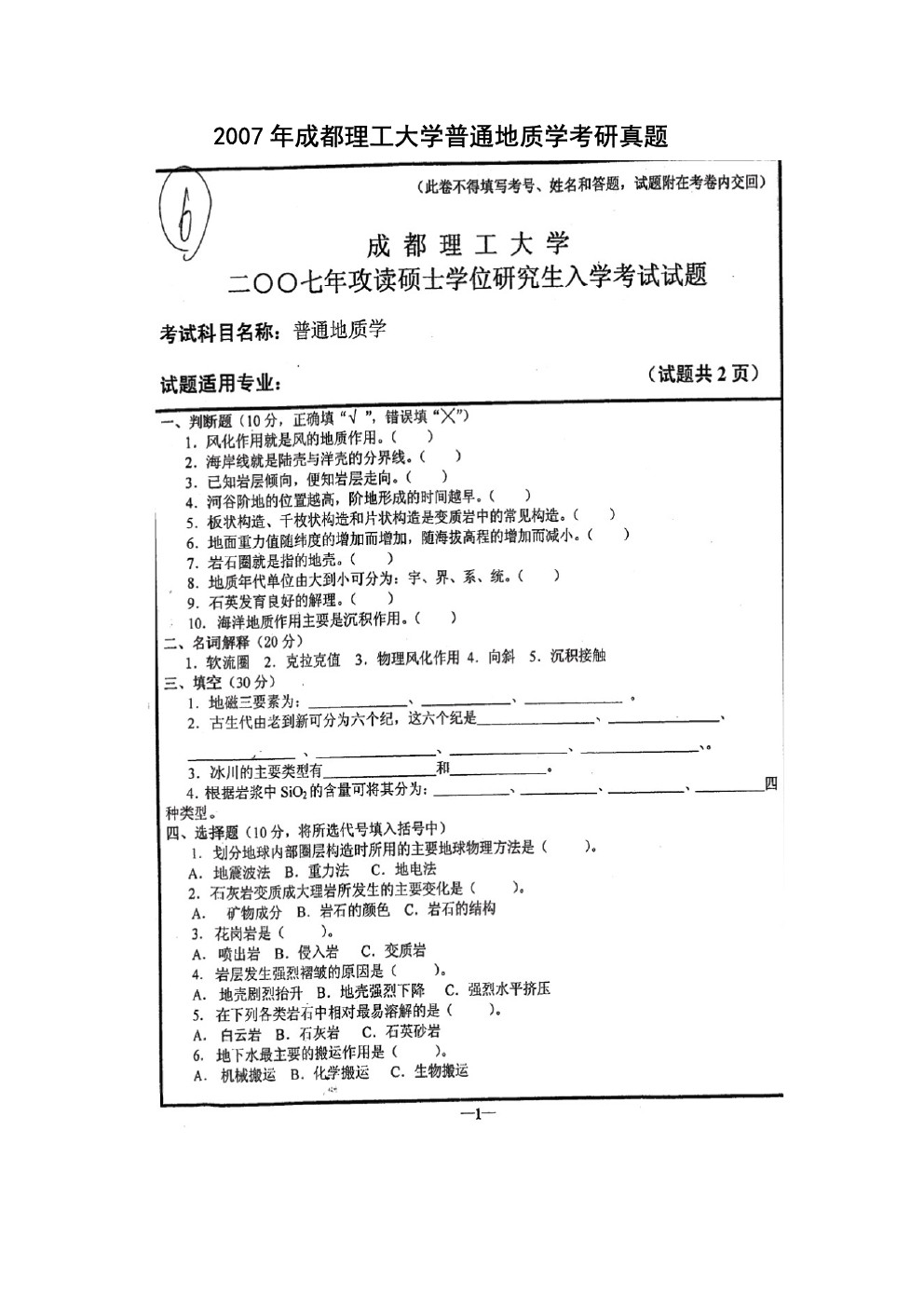 成都理工大学2014-2004普通地质学考研试题真题(13)