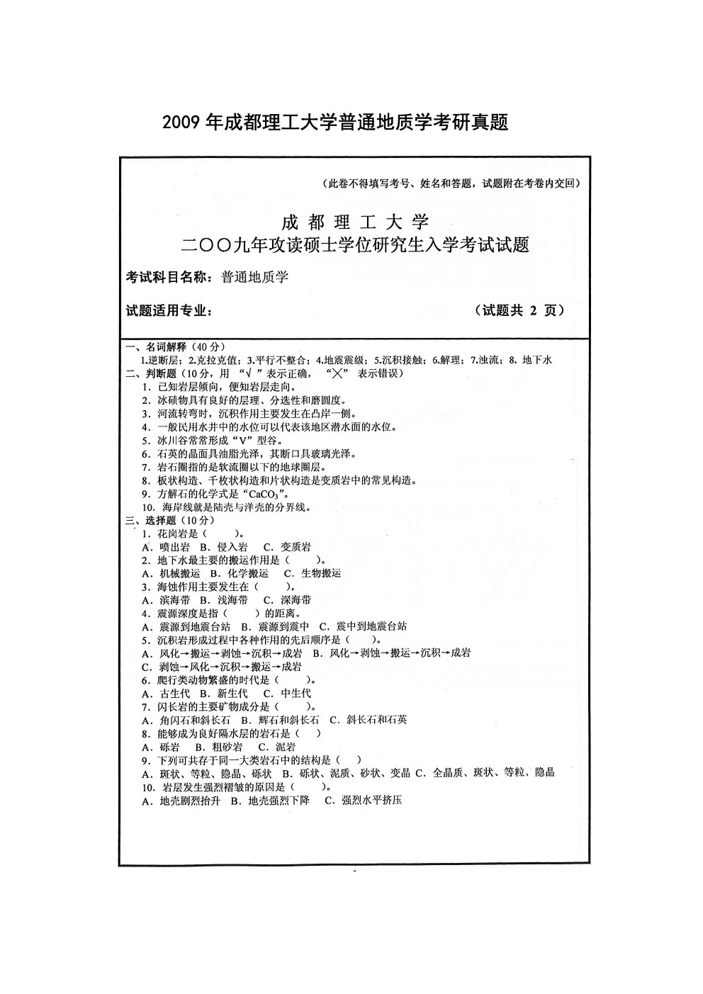 成都理工大学2014-2004普通地质学考研试题真题(17)