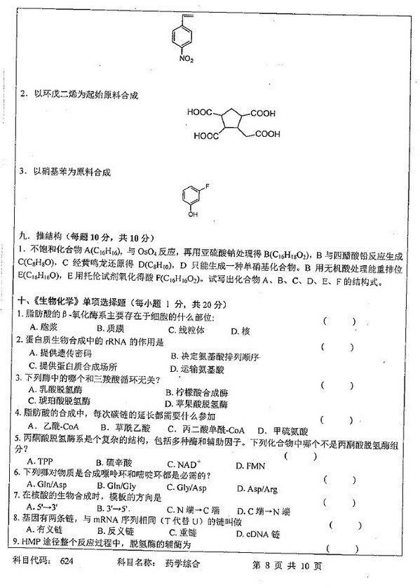 2013年苏州大学624药学综合考研试题(8)