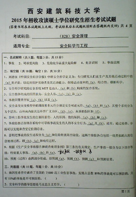 西安建筑科技大学2017-2006安全原理828考研真题试题(13)