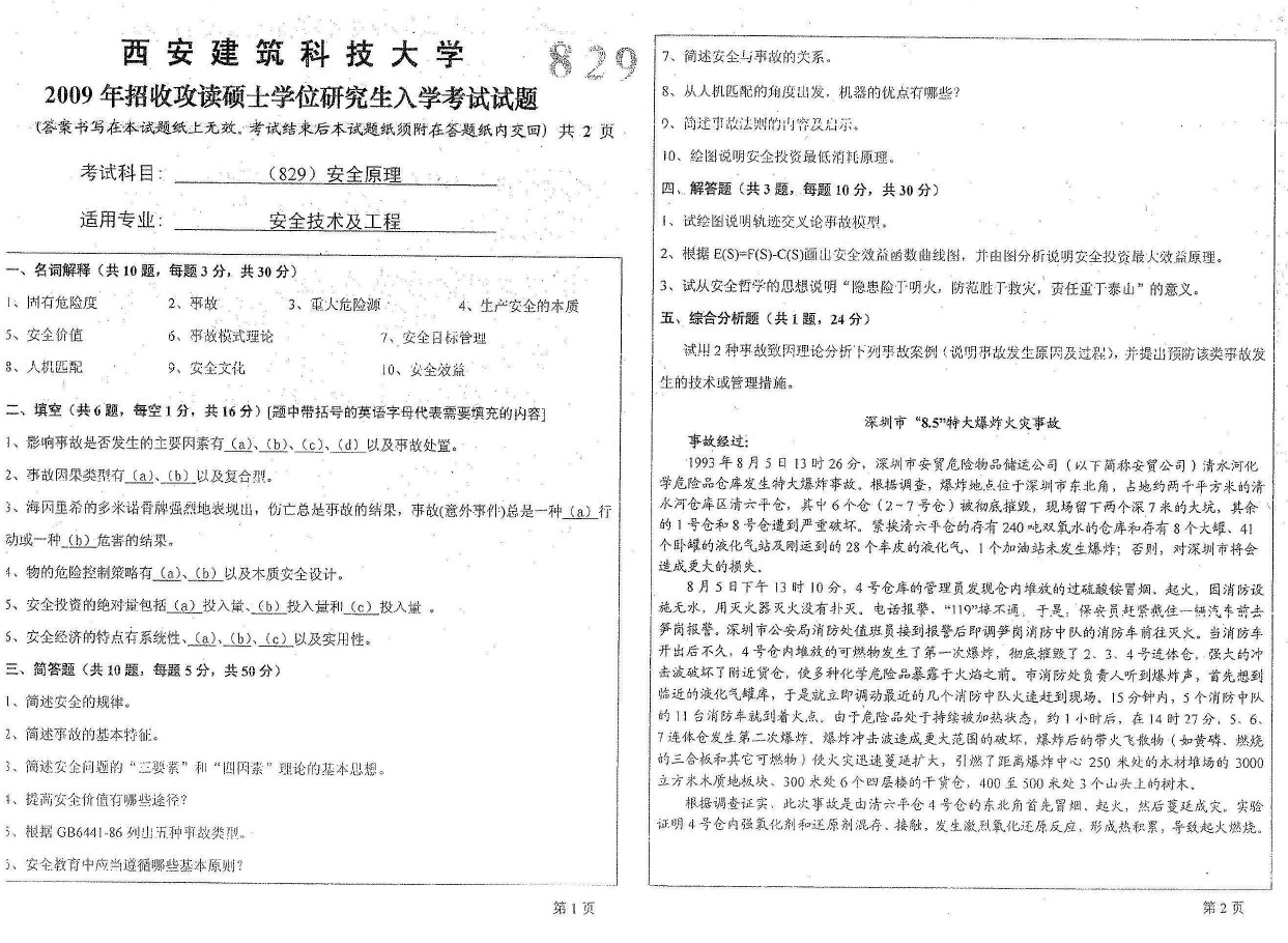 西安建筑科技大学2017-2006安全原理828考研真题试题(22)