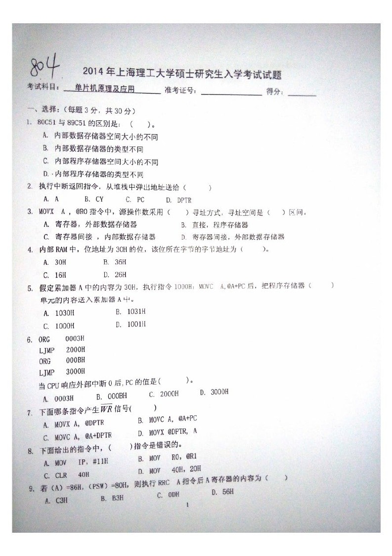 上海理工大学单片机原理及运用2007,2010-2014考研真题汇编(59)
