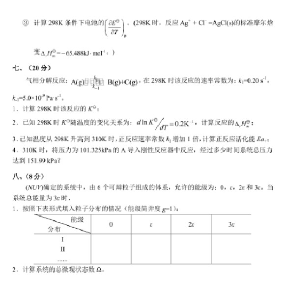2014-2016年北京化工大学物理化学硕士考研真题(4)