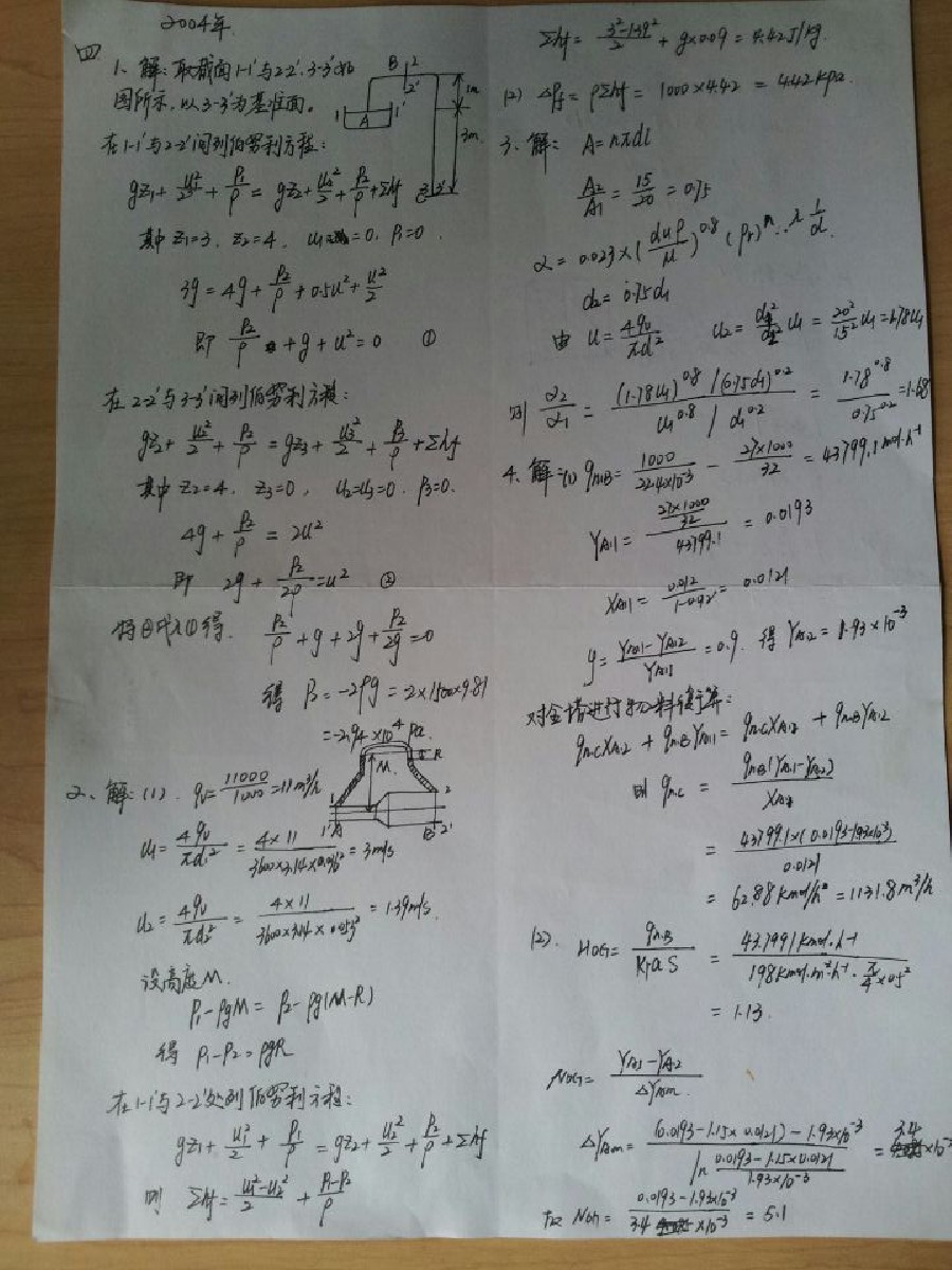 武汉大学2003到2013年化工原理考研真题计算题详细答案手写版(11)