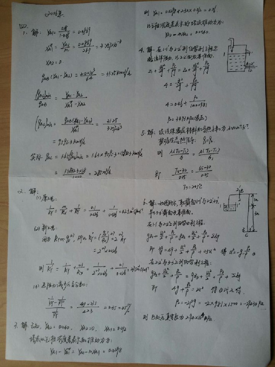 武汉大学2003到2013年化工原理考研真题计算题详细答案手写版(12)