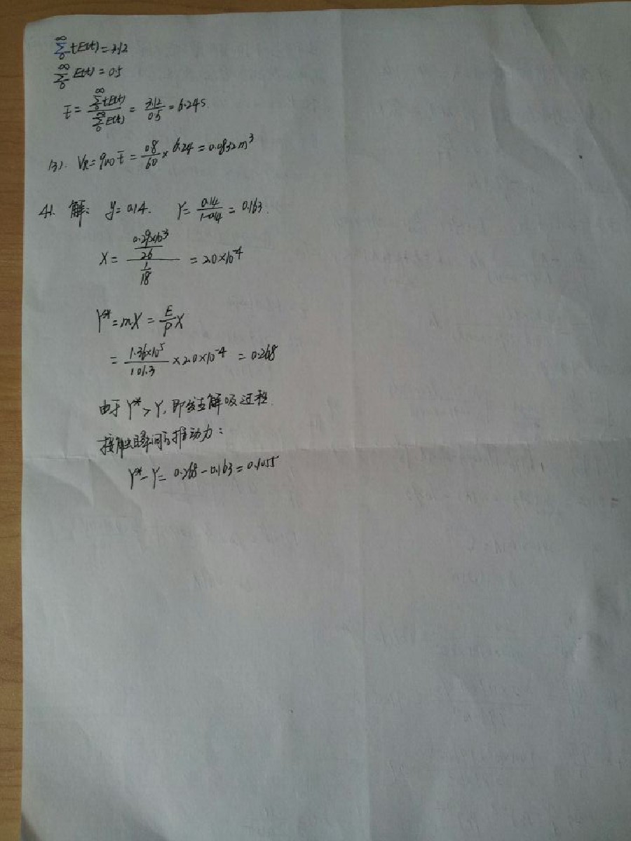 武汉大学2003到2013年化工原理考研真题计算题详细答案手写版(15)