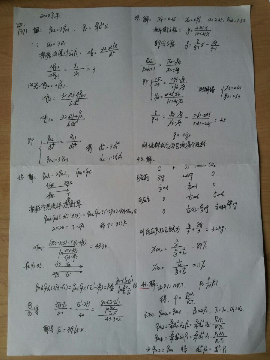 武汉大学2003到2013年化工原理考研真题计算题详细答案手写版(4)