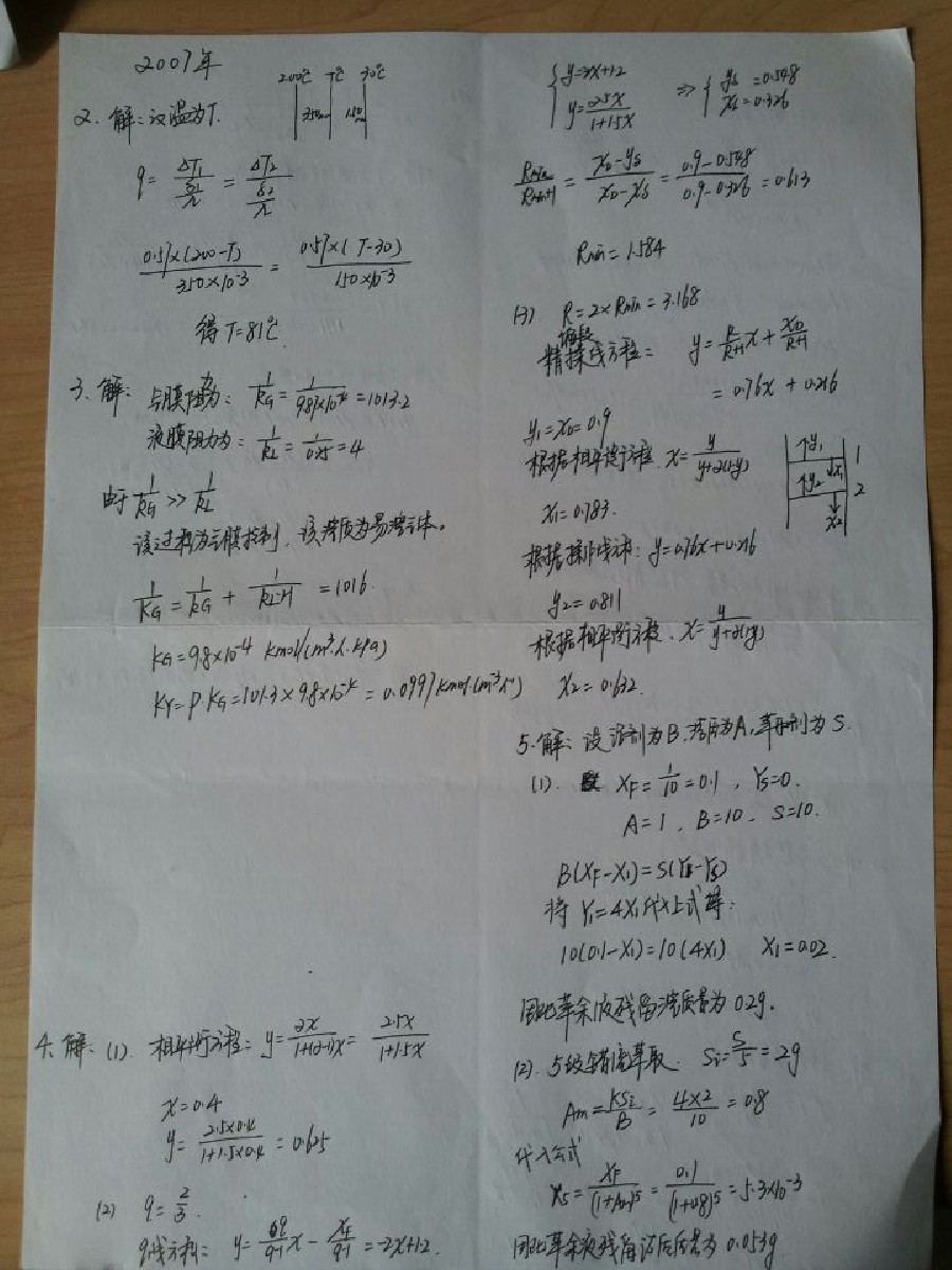 武汉大学2003到2013年化工原理考研真题计算题详细答案手写版(6)