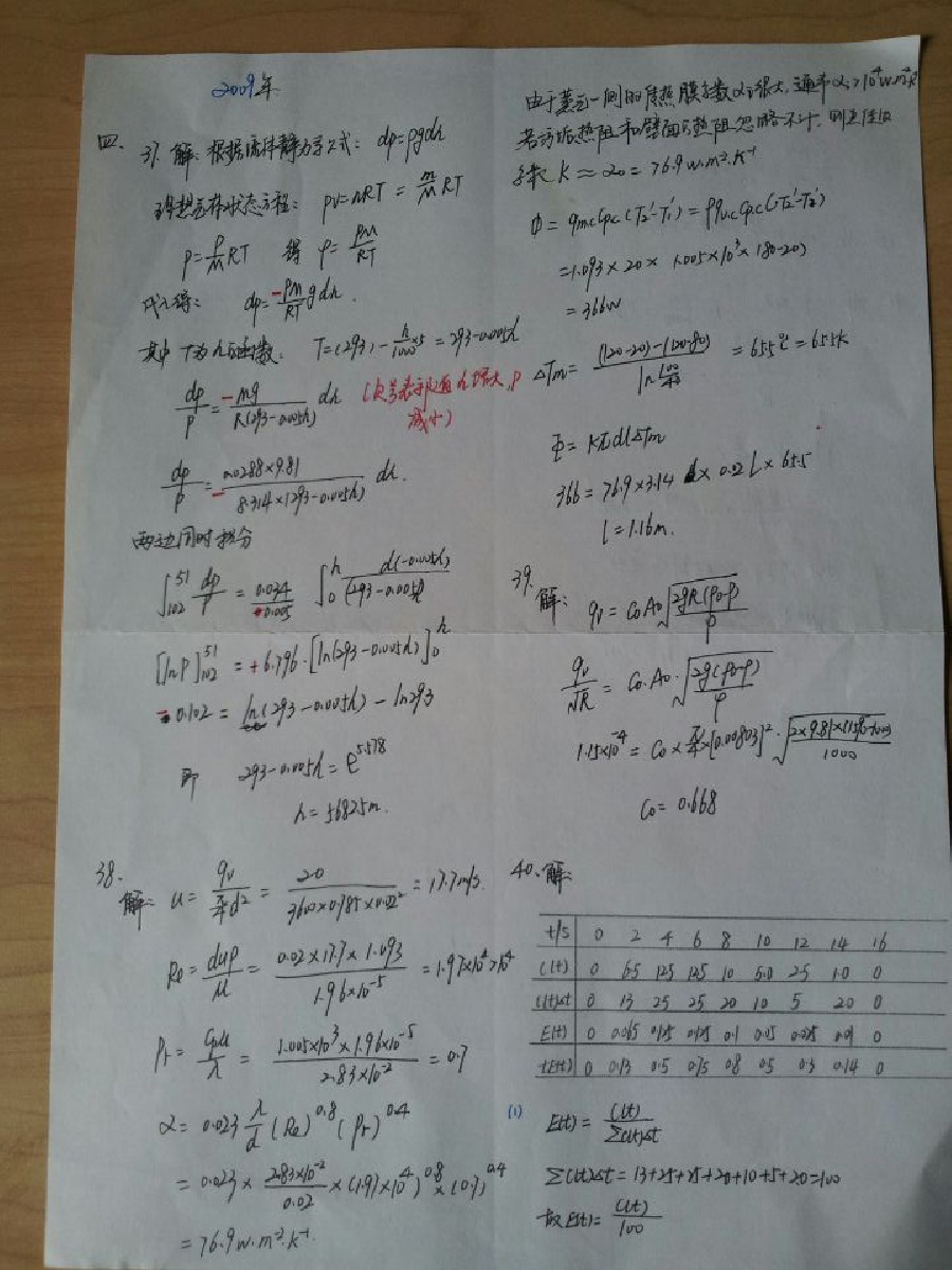 武汉大学2003到2013年化工原理考研真题计算题详细答案手写版(7)