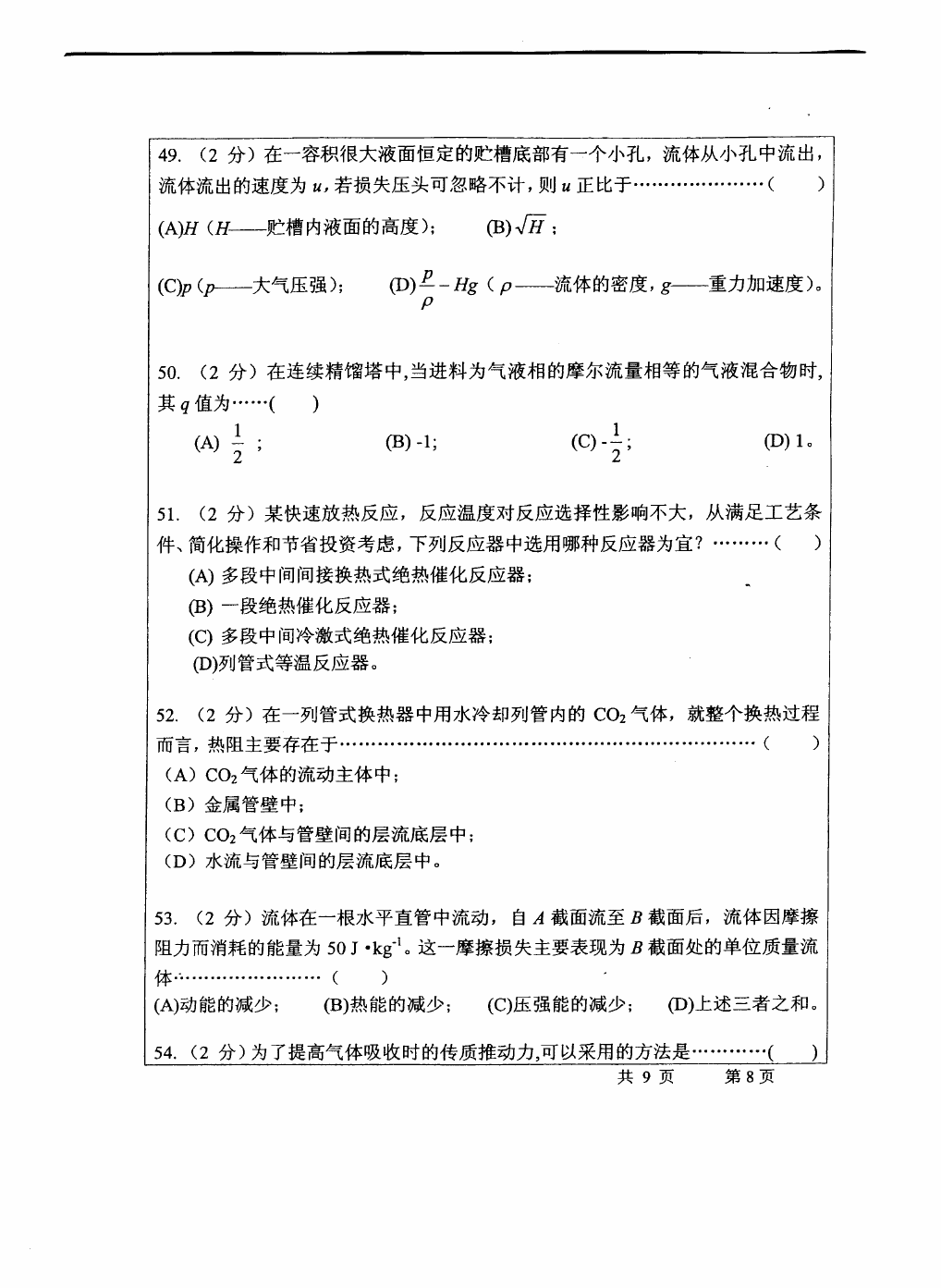2007年,2010年,2012年武汉大学化工原理考研真题(12)