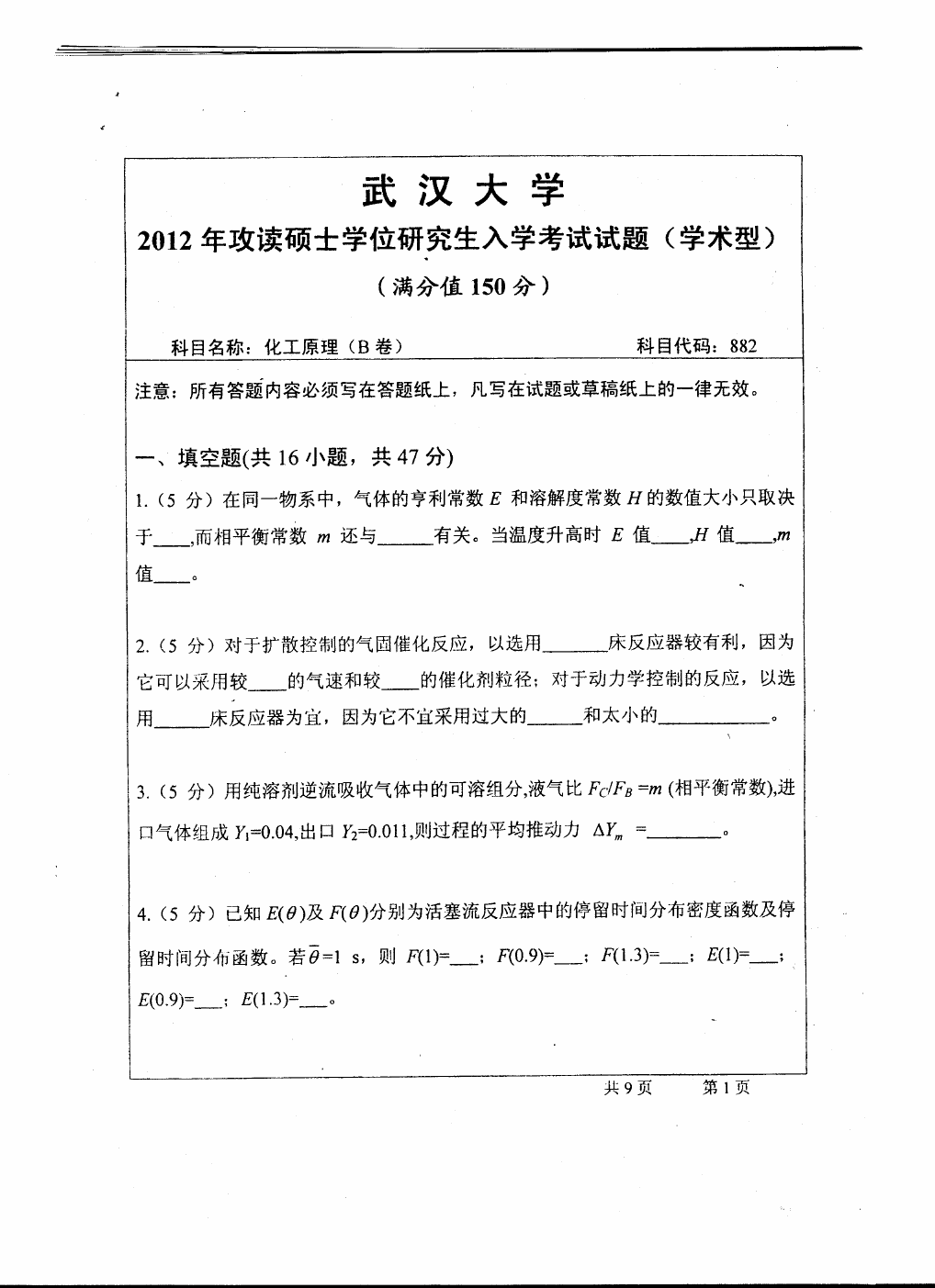 2007年,2010年,2012年武汉大学化工原理考研真题(14)