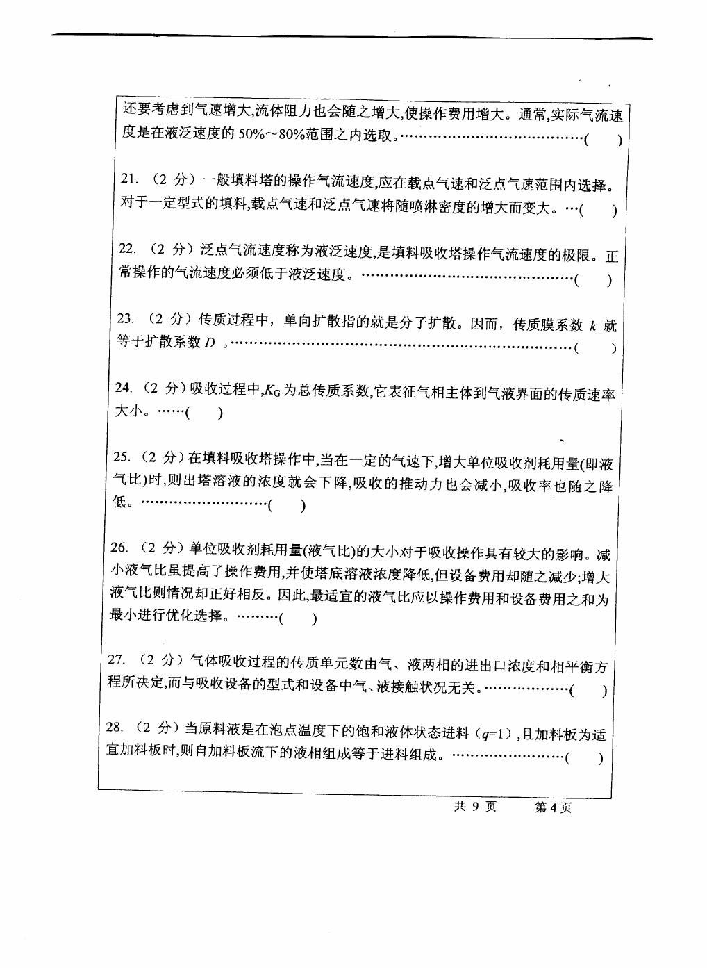2007年,2010年,2012年武汉大学化工原理考研真题(8)