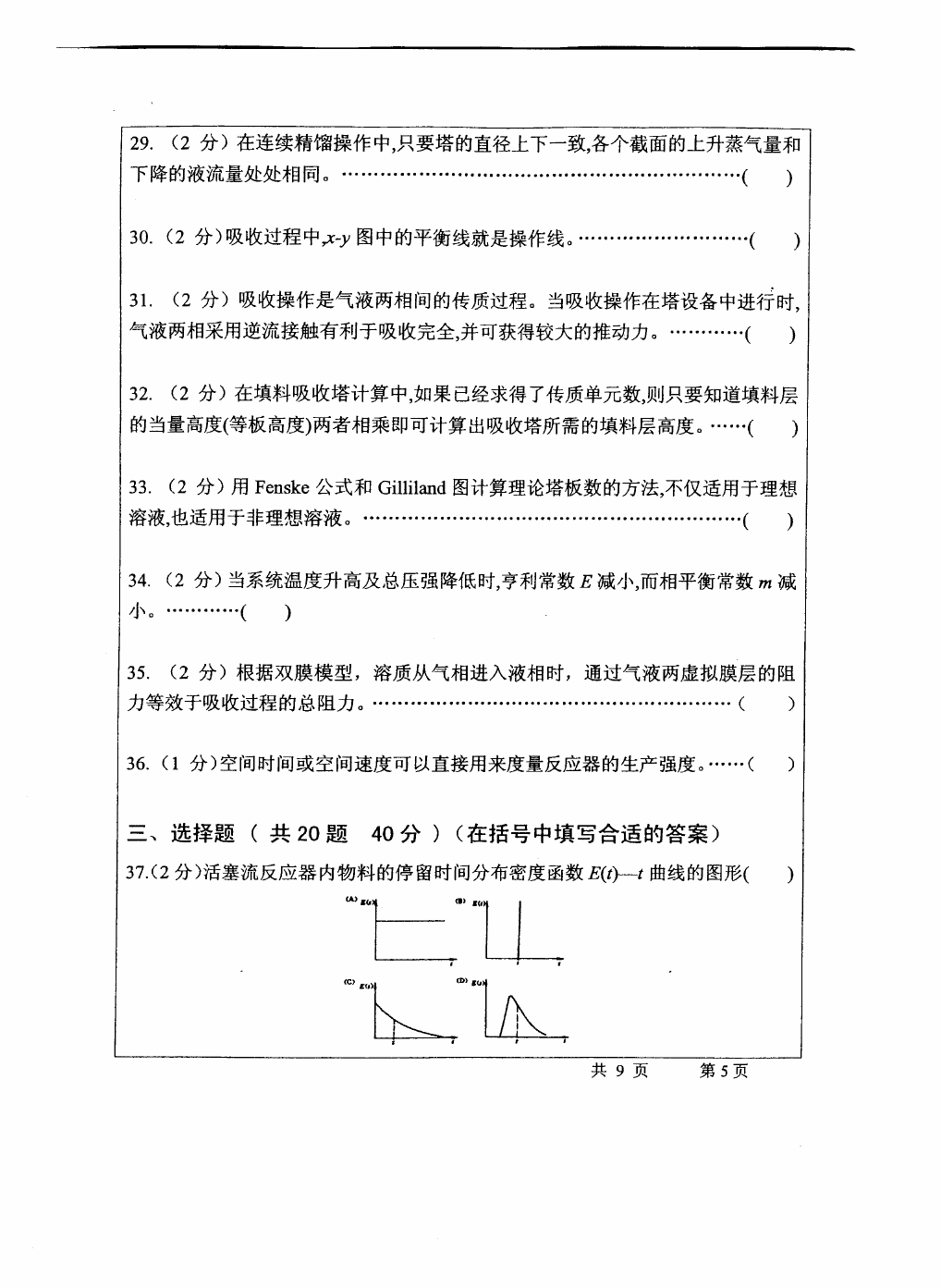 2007年,2010年,2012年武汉大学化工原理考研真题(9)