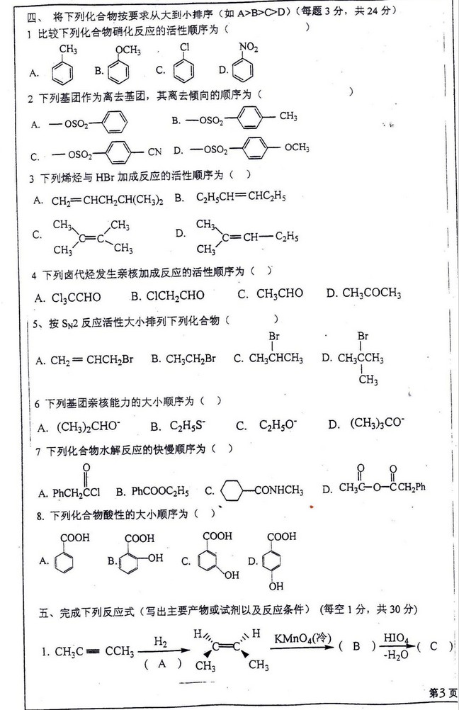2007-2010年四川大学890有机化学硕士研究生考研考试真题(14)