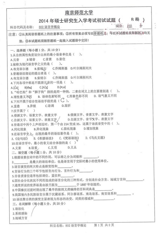 2013-2016南京师范大学语言学概论802考研真题(5)