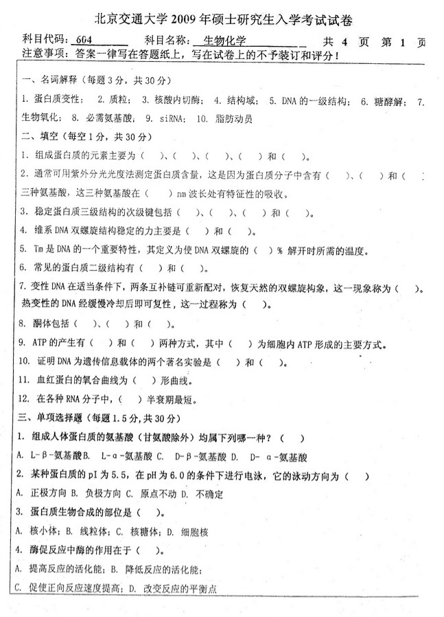 2008-2011北京交通大学617生物化学历年考研真题(4)