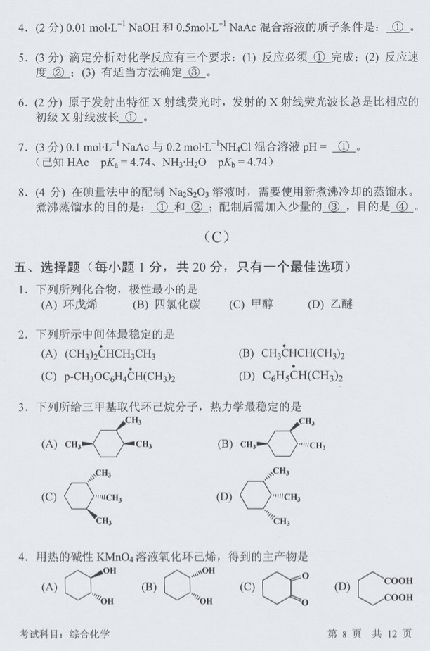 2016中国科学技术大学综合化学846考研试题(8)