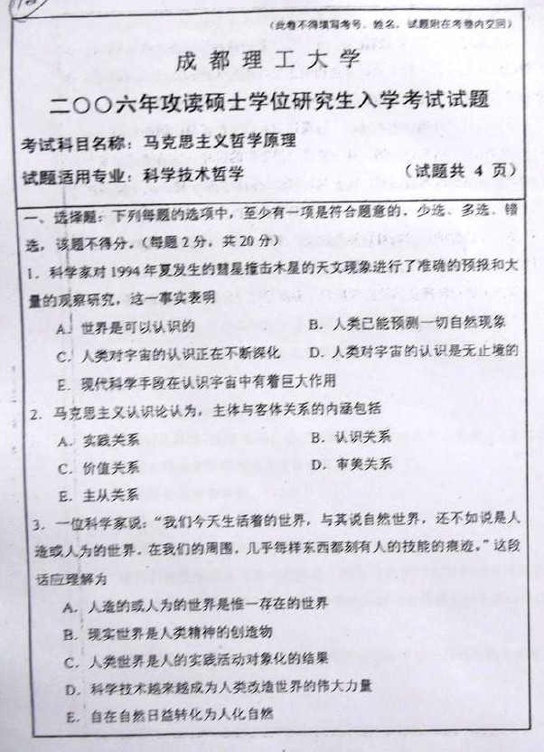 成都理工大学2011-2004马克思主义哲学原理617考研真题(11)