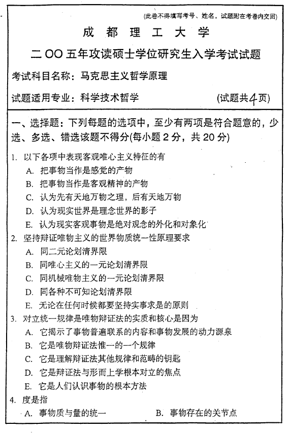 成都理工大学2011-2004马克思主义哲学原理617考研真题(7)