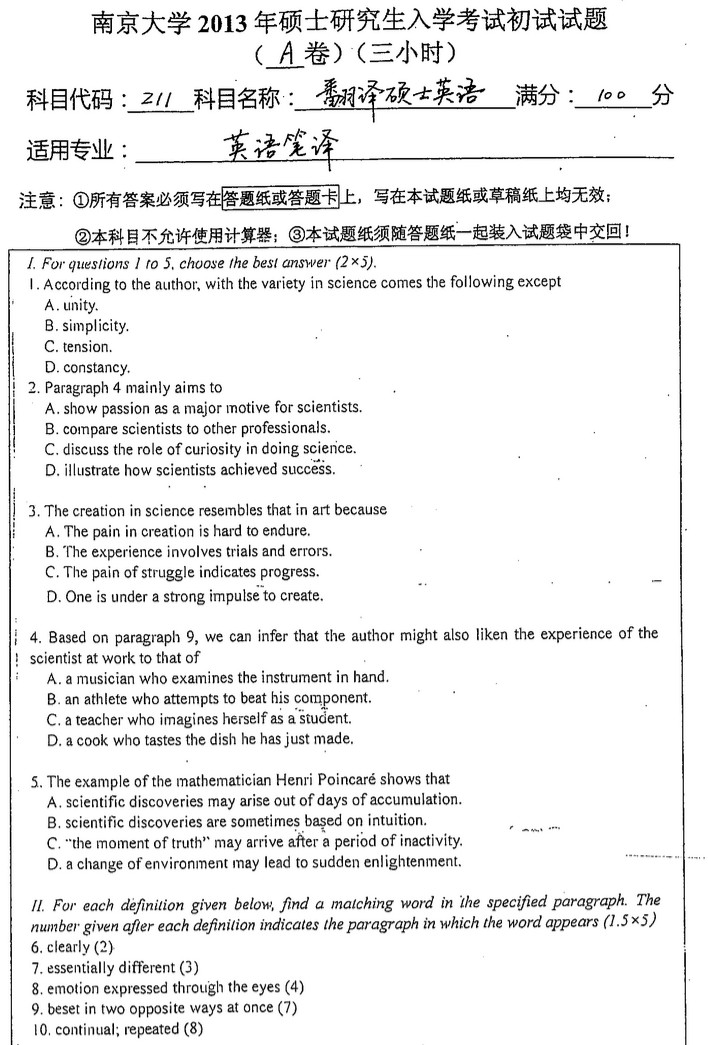 南京大学2013翻译硕士MTI翻译硕士英语211考研真题(5)