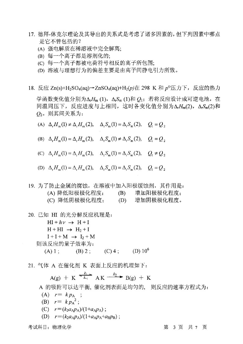 中国科学技术大学2016-2011物理化学考研真题和答案(24)
