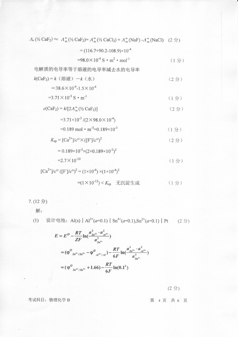 中国科学技术大学2016-2011物理化学考研真题和答案(37)