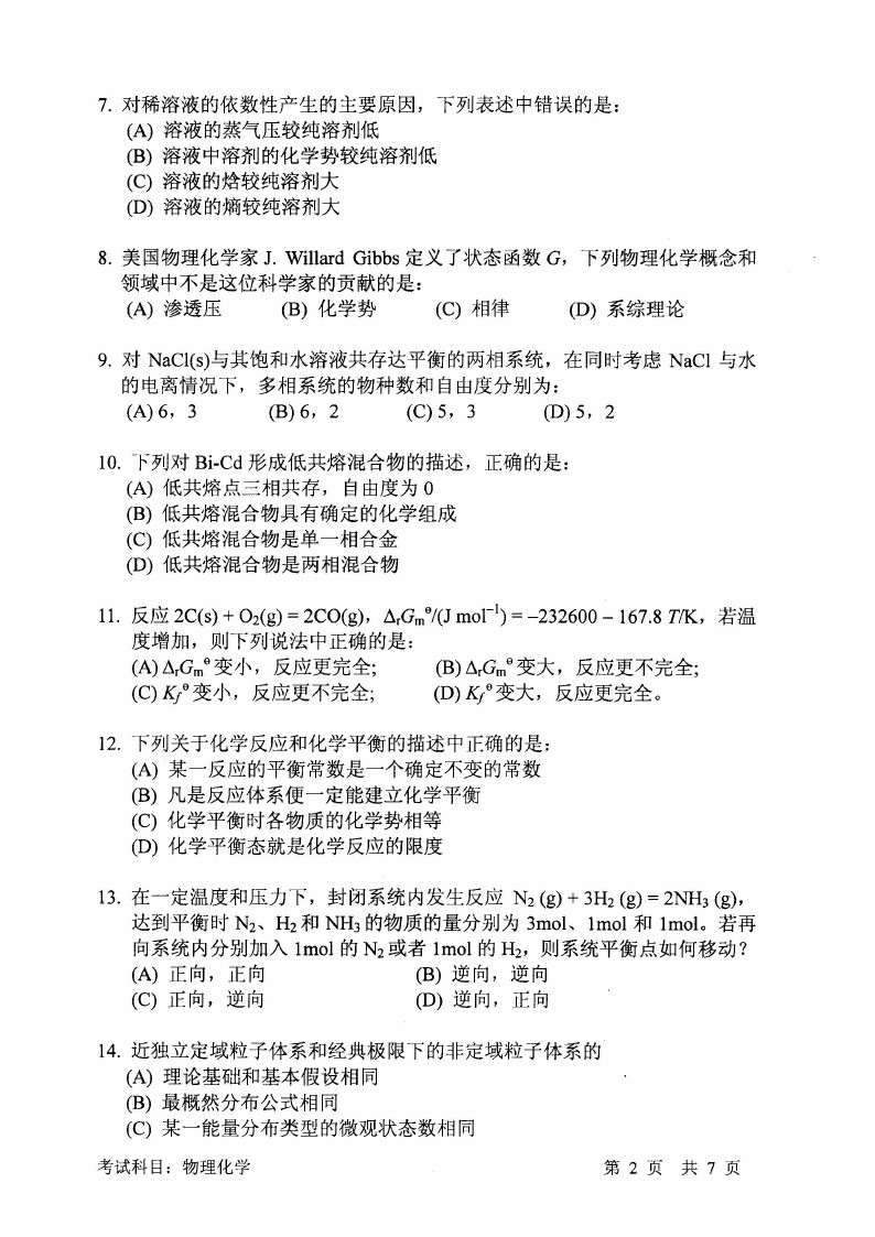 中国科学技术大学2016-2011物理化学考研真题和答案(9)