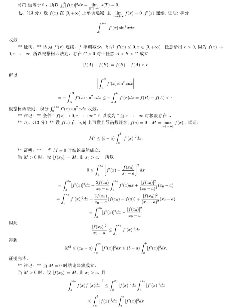 华南理工大学2020年数学分析考研试题参考解答(5)