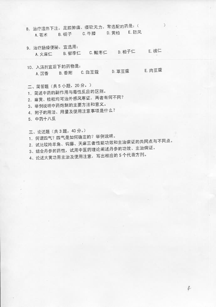 • 江苏大学2007年考研真题-中药综合